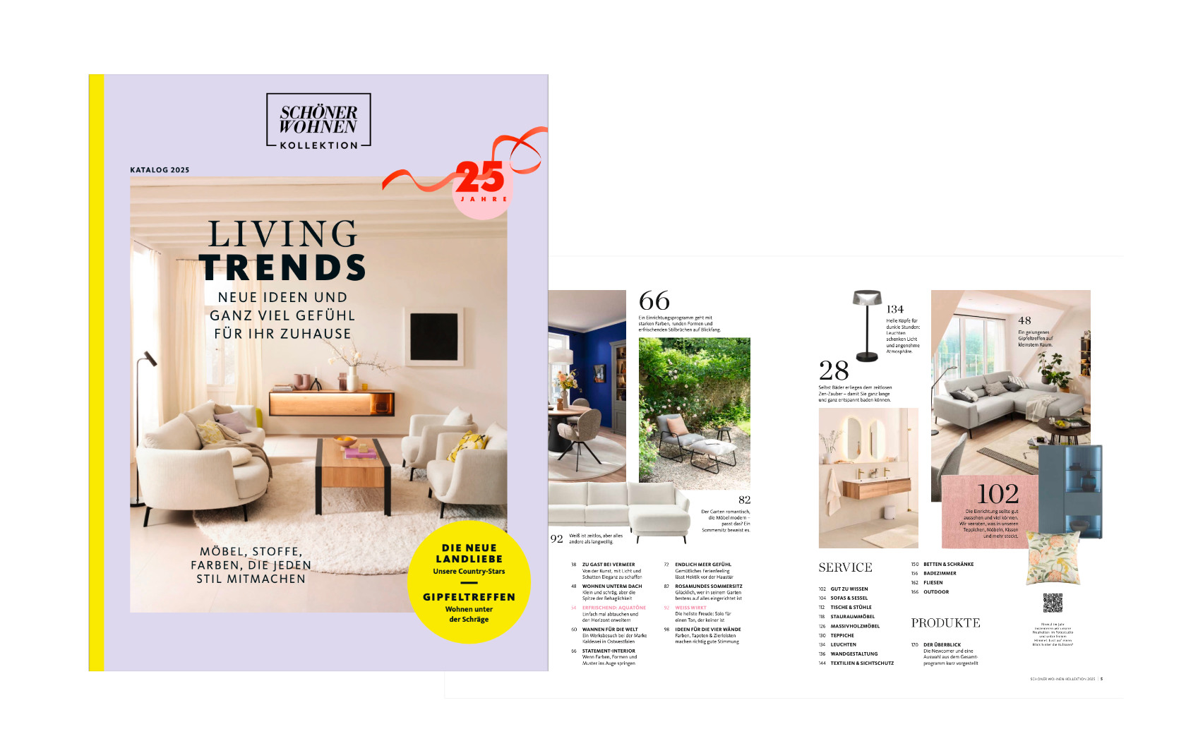 In unserem Downloadbereich finden Sie sämtliche Informationen zu Ihrem SCHÖNER WOHNEN-Kollektionsprodukt. Von den aktuellen Produktbroschüren und Modellübersichten über die Garantiebestimmungen bis hin zu Pflege- und Anwendungshinweisen sind alle Informationen für Sie zum Download bereitgestellt. Sie haben Interesse an weiteren Produkten? Dann stöbern Sie gern durch den aktuellen Katalog!